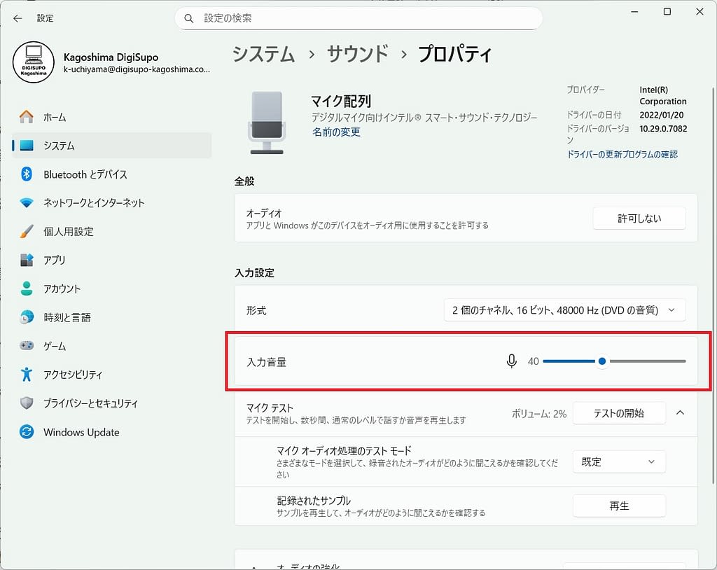 • 対処法:デバイスマネージャーからマイクのドライバーを更新。