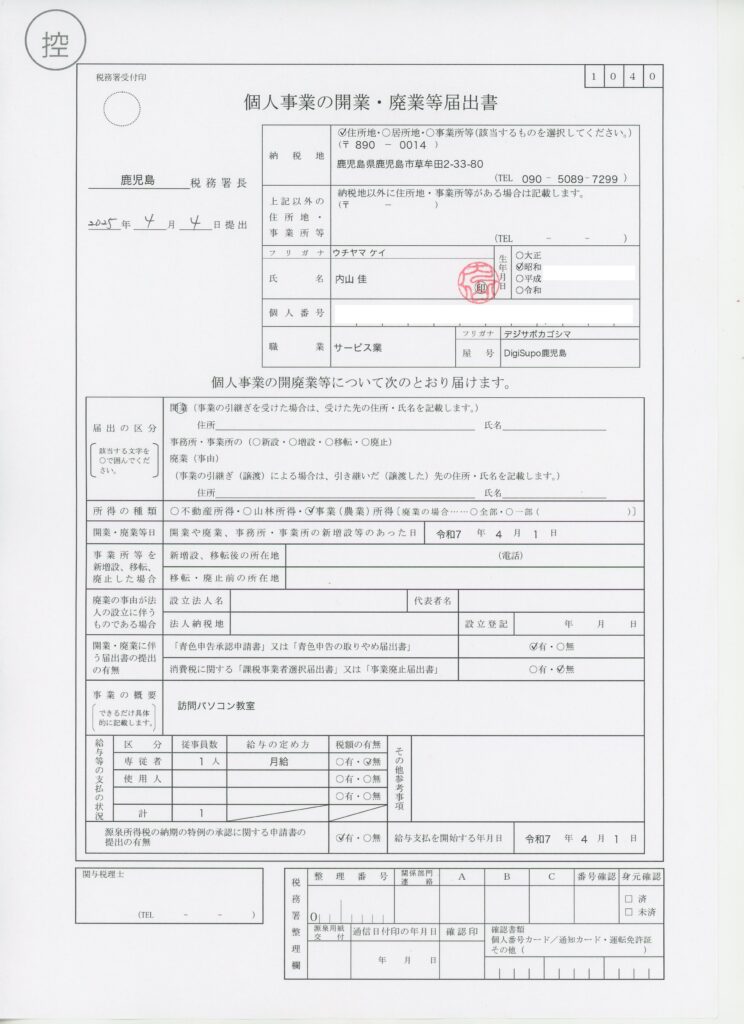 とりあえず、これで個人事業主として活動をする宣言をしたわけです。