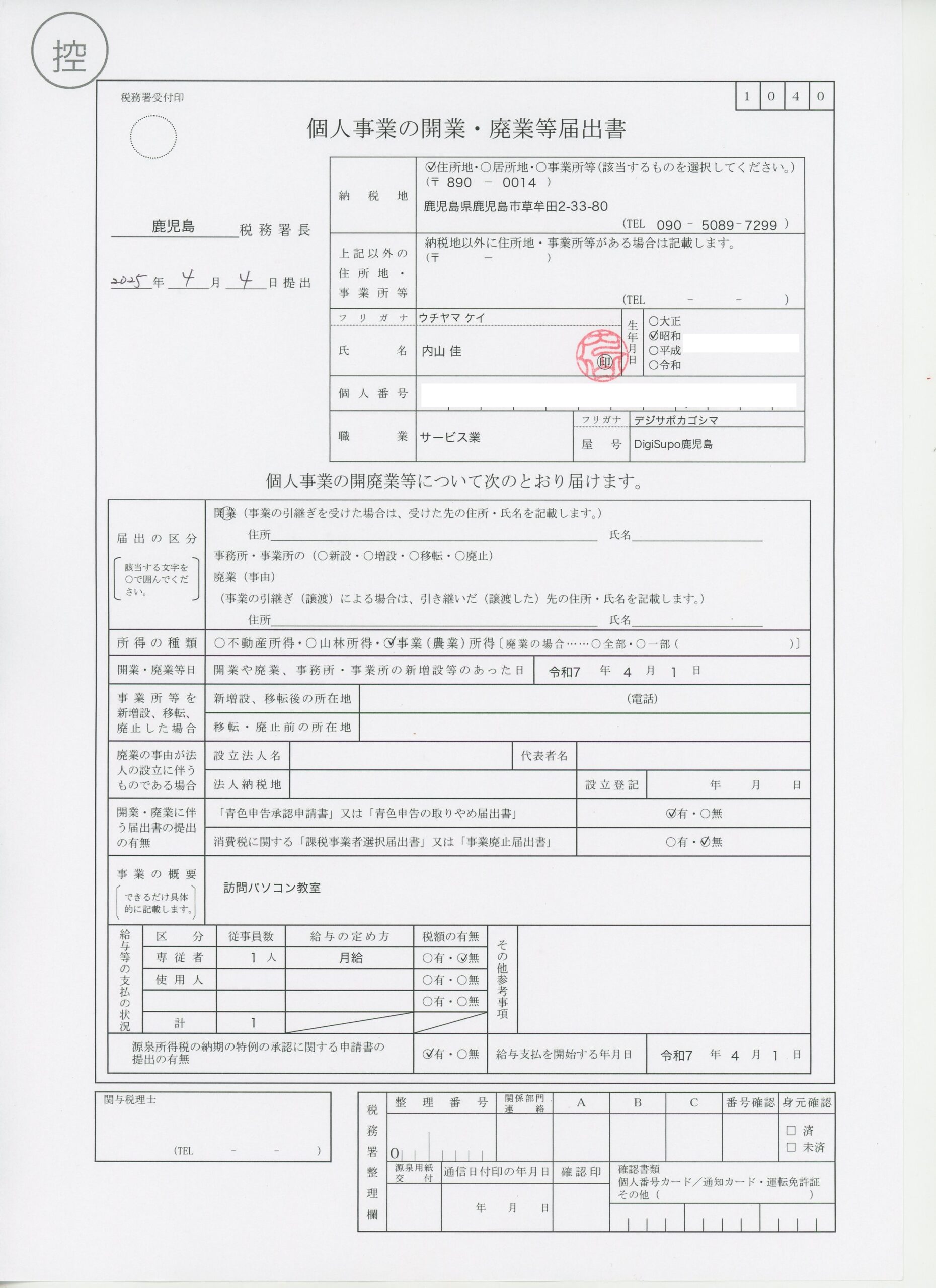 鹿児島税務署に個人事業の開業届出書を提出してきました。